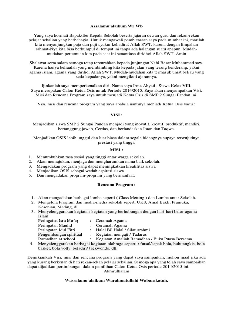 Maybe you would like to learn more about one of these? Visi dan misi menjadi ketua osis. We did not find results for: Check spelling or type a new query.